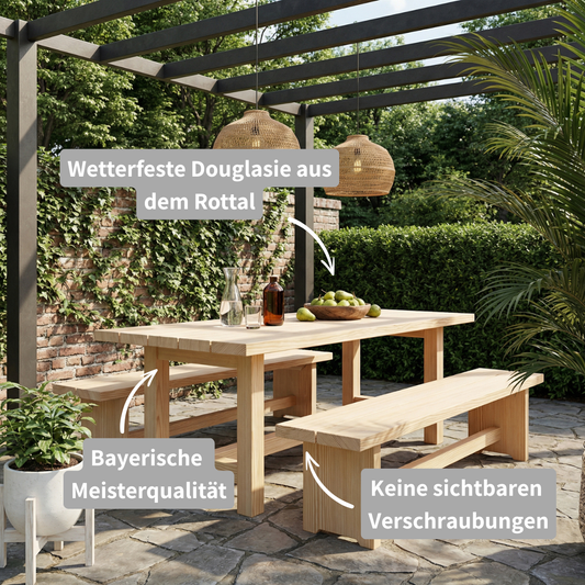 MEBE Franzl - Douglasien Gartengarnitur - Tisch mit 2 Bänken - 99 x 200 cm